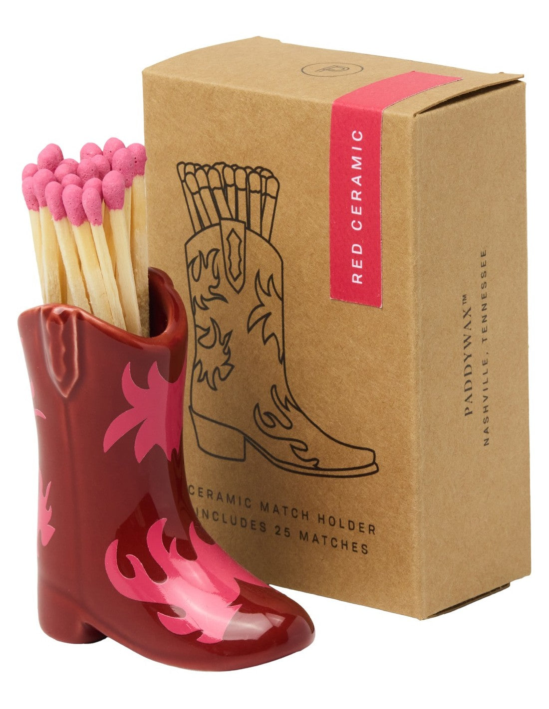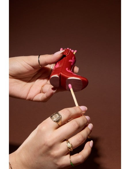 Ce porte-allumettes en forme de botte de cowboy, inspiré du style vintage et fabriqué en céramique, est livré avec 25 allumettes de sécurité qui s’allument facilement en les frottant sous la semelle de la botte ! Une fois les allumettes terminées, le porte-allumettes reste compatible avec n’importe quel type d’allumettes, grâce à sa surface en céramique rugueuse qui permet de les enflammer.